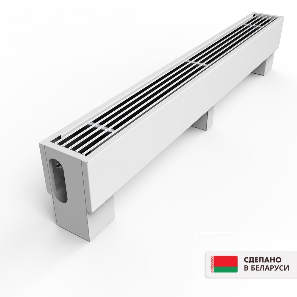 Проще говоря, это отопительный прибор, который устанавливается прямо на пол. Внутри корпуса размещены теплообменники, по которым циркулирует горячая вода. Нагреваясь, воздух поднимается вверх, равномерно распределяя тепло по всему помещению. И всё это без лишнего шума и сквозняков!